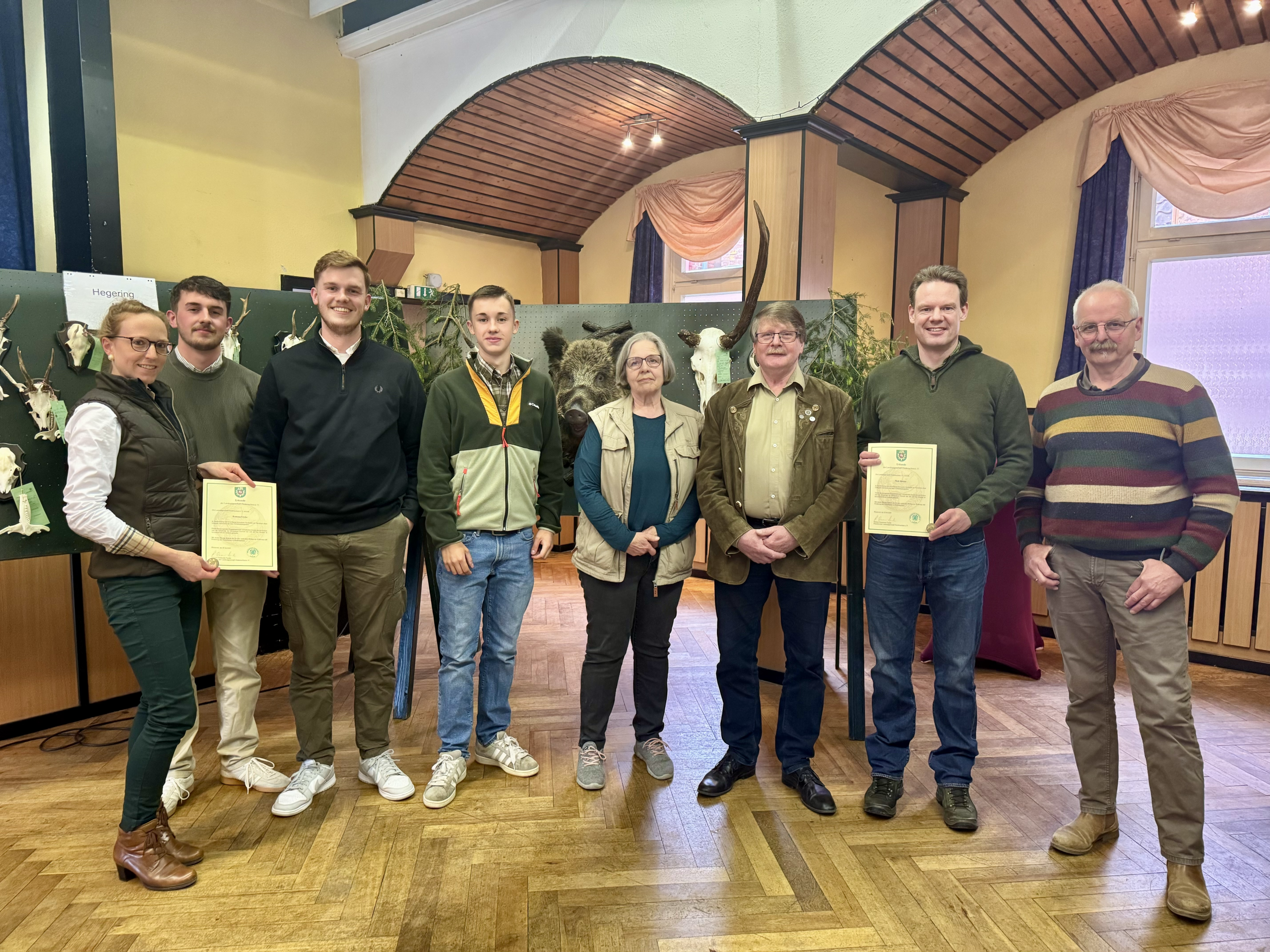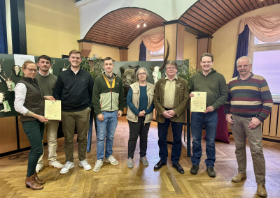 Die Trophäenschau und auch die feierliche Übergabe des Jägerbriefes an die Teilnehmerinnen und Teilnehmer des letzten Jungjägerkurses waren wieder ein fester Bestandteil des Abends. Neben einigen Neuwahlen im Vorstand gab es dieses Mal einen weiteren Programmpunkt: Katharina Sehlen, Tierärztin und zweite Vorsitzende des Hegerings 1, hat einen Kurzvortrag zum Thema „Zoonose Waschbärspulwurm“ gehalten – ein aktuelles Thema, welches jede Jägerin betrifft.